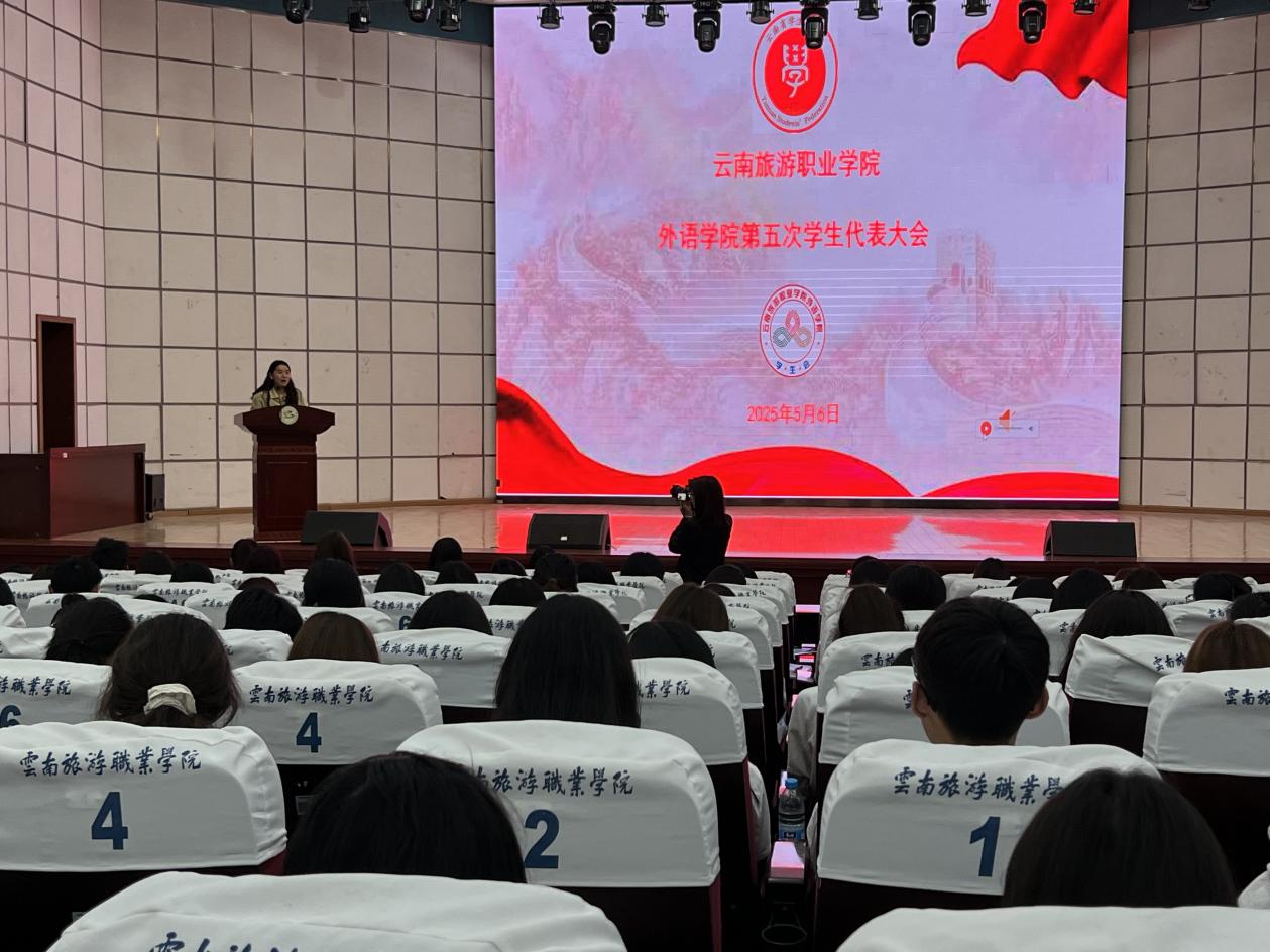 拼搏风采绽芳华,携手同心筑新篇。在蓬勃的五月,为引领广大青年学子勇担使命、砥砺前行,全力凝聚学生组织的创新活力与服务效能,外语学院于5月6日在学校报告厅举行了第五次学生代表大会。外语学院党支部副书记雷蕾、团总支书记张馨元、环球360管理网代理校级学生会执行主席唐志薇、各二级学院主席团成员、外语学院学生会全体成员以及176名正式学生代表出席本次会议。会议由主席团成员王鑫月主持。