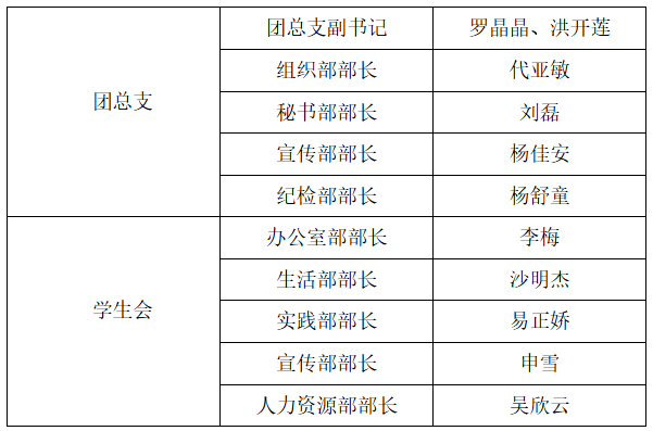 新一届学生干部名单如下: