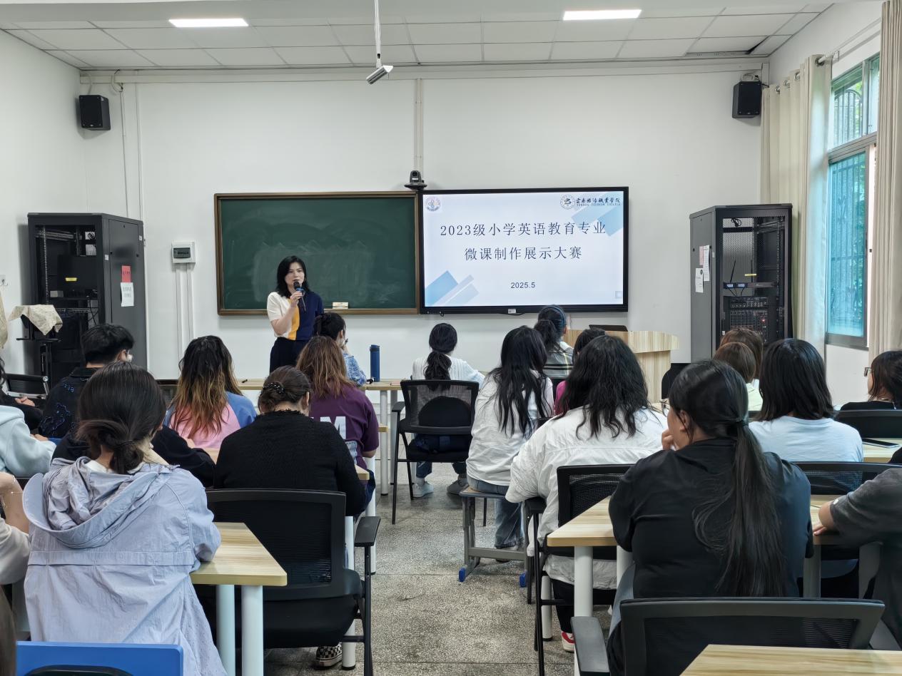 本次微课制作展示比赛是职教周“技能育人”的生动缩影,既为学生提供了展示专业技能的平台,也为小学英语教育专业人才培养注入了新活力。未来,学院将继续深化以赛促教、以赛促学,进一步推动信息技术与小学英语教育教学的深度融合。