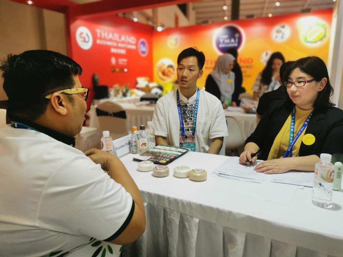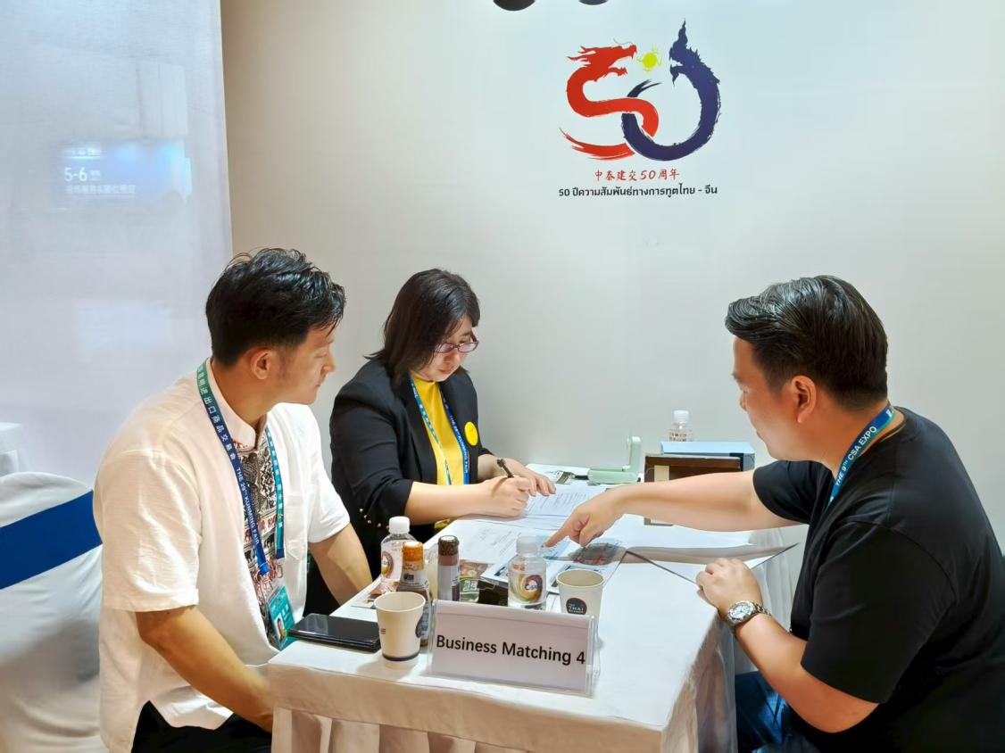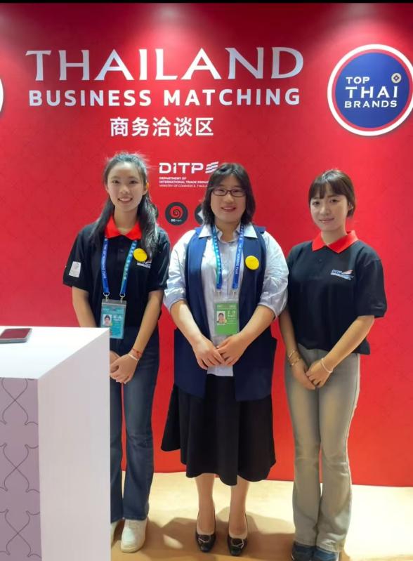 展会期间,外语学院泰语专业教师张艳教受邀担任泰国领事馆商务洽谈现场翻译,凭借扎实的专业知识和丰富的实践经验,精准传递双方的合作意向与商业细节,有效化解了语言障碍促进中泰双方的商务合合作意向沟通,成功搭建起一座坚实可靠的语言桥梁。